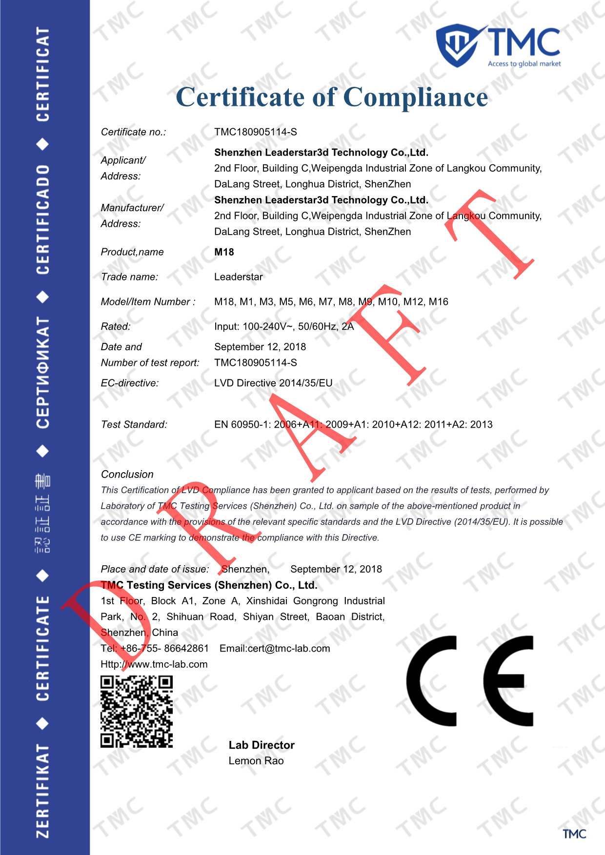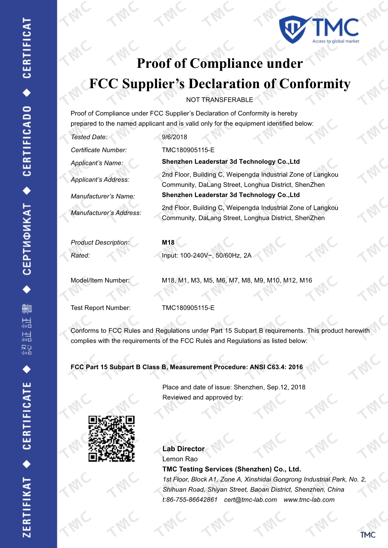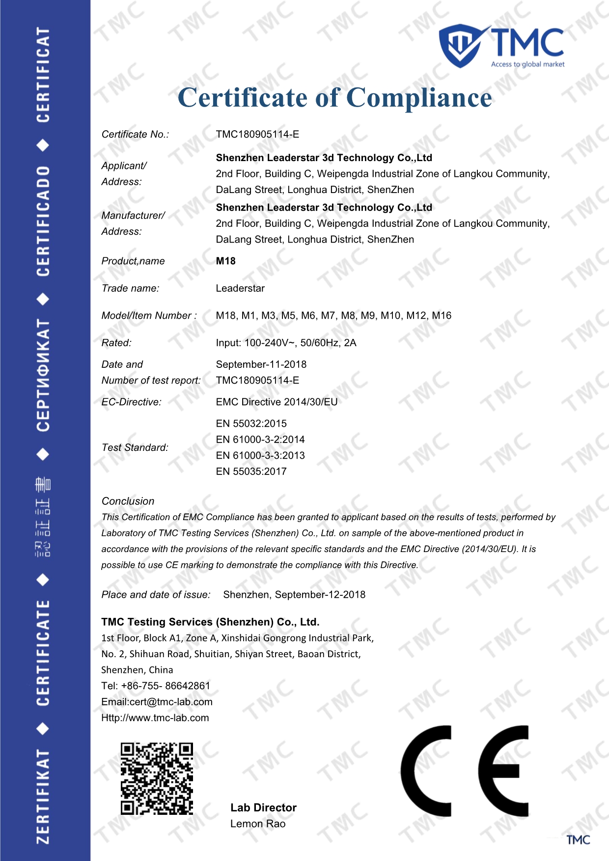 TMC190620102-E恩卓特-3D打印机-EMC证书(副证和修改)
