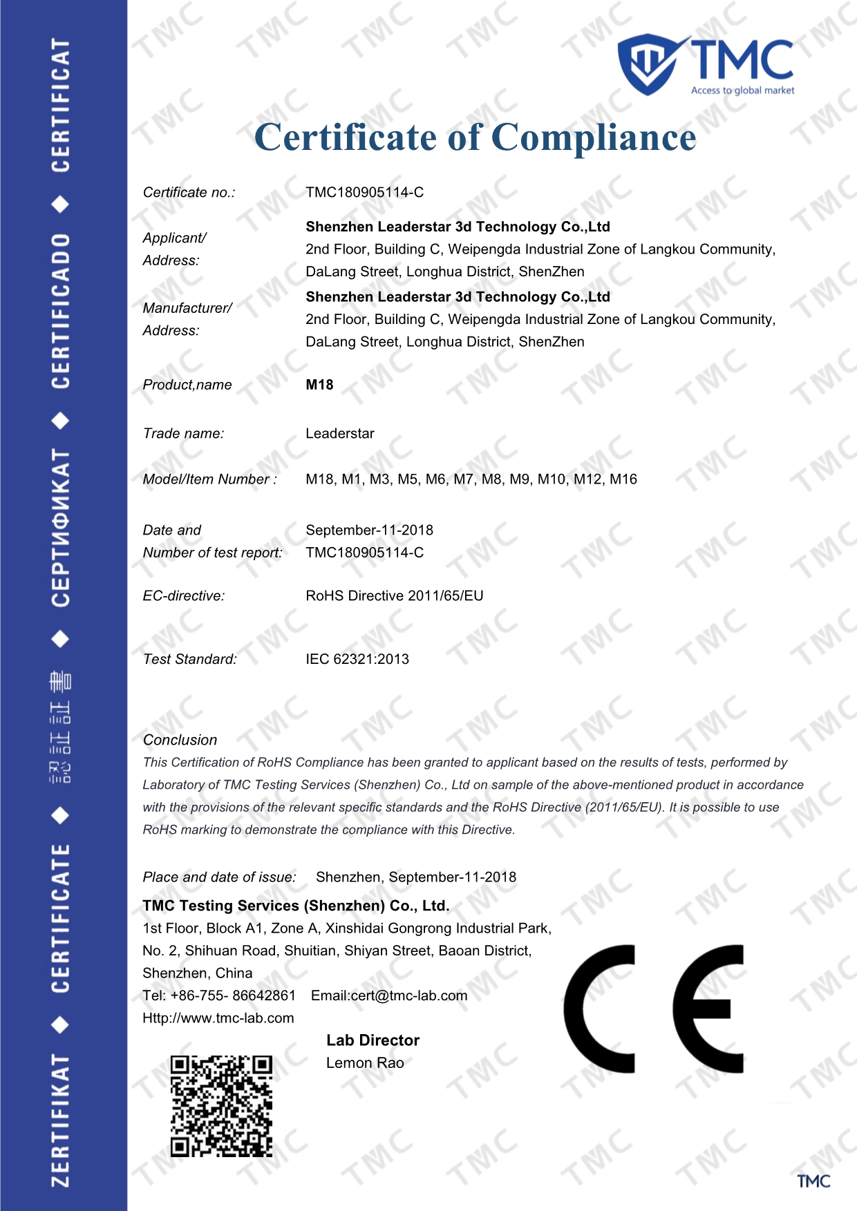 TMC190620102-C恩卓特-3D打印机-RoHS2.0证书(副证和修改)